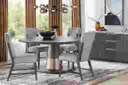 A grounding calm in tune with the rhythm of life infuses your room's natural ease when the Preston Heights collection from Drew & Jonathan comes home, blending peace and tranquility in the heart of your space. Crafted with oak veneers in a dark gray finish, this contemporary side chair adds comfort and texture with its stone-inspired fabric in light and dark gray speckles. Straight front legs and subtly tapered angled back legs keep the silhouette sleek and sophisticated.