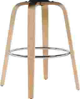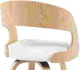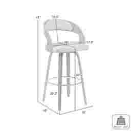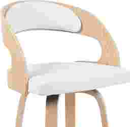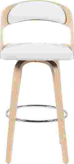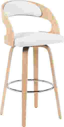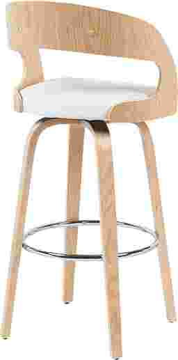 Bring elevated mid-century charm and modern versatility to your space with the Primegold white barstool. Designed to offer both visual appeal and everyday comfort, the Primegold features a gently curved wood backrest and a supportive cushioned seat, upholstered in smooth, easy-to-clean faux leather. The open-back design adds breathability and creates a lightweight silhouette that complements a wide range of interior styles. Perfect for kitchens, home bars, or casual dining spaces, the 360-degree swivel mechanism lets you move effortlessly and stay engaged in conversation no matter where the action is. The stool's sturdy four-leg wood base is reinforced by a round chrome footrest, offering added stability and relaxed support. Its well-balanced proportions make it an excellent seating choice for both compact apartments and spacious homes. Customer assembly is required.