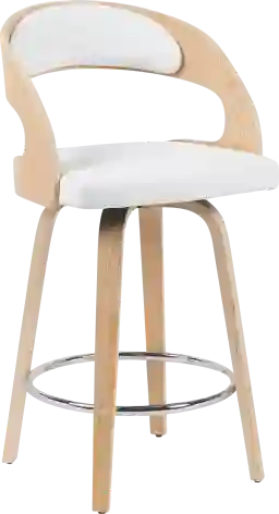 Bring elevated mid-century charm and modern versatility to your space with the Primegold white counter height stool. Designed to offer both visual appeal and everyday comfort, the Primegold features a gently curved wood backrest and a supportive cushioned seat, upholstered in smooth, easy-to-clean faux leather. The open-back design adds breathability and creates a lightweight silhouette that complements a wide range of interior styles. Perfect for kitchens, home bars, or casual dining spaces, the 360-degree swivel mechanism lets you move effortlessly and stay engaged in conversation no matter where the action is. The stool's sturdy four-leg wood base is reinforced by a round chrome footrest, offering added stability and relaxed support. Its well-balanced proportions make it an excellent seating choice for both compact apartments and spacious homes. Customer assembly is required.