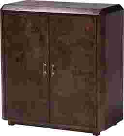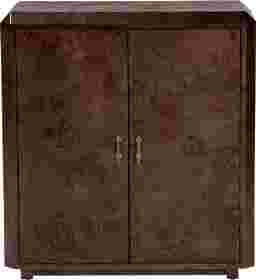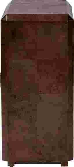 The Primsun dark brown accent cabinet boldly expresses the grace and beauty of the natural world. This modern piece consists of natural burl wood. The doors open to reveal two shelves perfect for organizing a variety of items while reserving the spacious tabletop as a fantastic display area. The Primsun will arrive fully assembled and showcases the rich knots and rolling grain unique to burl wood, resulting in no two pieces being exactly alike. Brilliantly designed metal door pulls highlight the elegant nature of the piece, making the Primsun a captivating fixture of any layout.