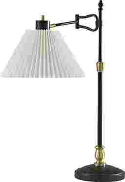 Meet the Proctor Vista Black Lamp, a striking blend of contemporary design and vintage-inspired accents. Its sleek black finish with antique brass accents exudes sophistication, while the pleated off-white fabric shade adds a touch of elegance. The highlight of this lamp is its swing arm adjustability, allowing you to direct light exactly where you need it. Standing at 27.5 inches tall, it's the perfect addition to your bedside table, desk, or living room side table. With an on/off rotary switch conveniently located on the socket, controlling the lighting is effortless, making this lamp both stylish and functional. Partial assembly may be required.