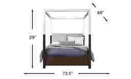 Sleek lines and refined details give the Prospect Heights bed the easy grace of a sophisticated uptown retreat. This contemporary canopy bed features elm veneers stained a rich dark brown and complemented with bright white details for balanced, airy contrast. An upholstered headboard in beige adds a soft touch, and the white finish on the frame reaches from the middle of the four posts to the top of the canopy for a two-tone look.