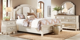 The graceful ease of a sun-drenched morning in a countryside manor comes home in the Provence collection's timeless character, thoughtful craftsmanship and natural textures. Boasting birch veneers in a white finish, this traditional bed brings elegant charm with detailed molding and tapered bun feet. The drop-shoulder headboard showcases triple upholstered panels in gray fabric accentuated with a nailhead trim for added definition while the footboard's detailed molding creates two panels for a classic appeal. Mattress and foundation (if required) sold separately.