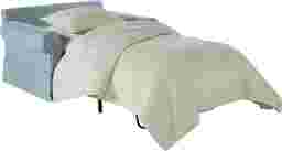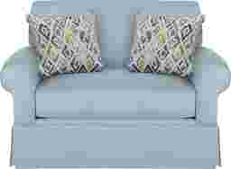 The Provincetown sleeper chairs sumptuously oversized seat makes it a comfortable addition to your home. Its covered in woven upholstery in a wonderful sky blue that features a linen-style weave for softness and durability. The transitional design features a large reversible T-style back cushion, a reversible seat cushion, welted seams, and a crisp skirted base. If you have an overnight guest, its easy to pull out the twin-sized Sealy Royale mattress for a comfortable place to sleep. Included accent pillows add a lovely pop of complementing colors. 100% Polyester
