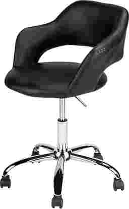Work in style and comfort with the Purplelight black office chair that has an elegant, modern design. The extra-wide, low backrest curves forward and downward to form integrated armrests that connect to the deep seat. For a comfortable feel, this chair is padded and fully upholstered in a soft, black leather-look fabric. A hydraulic lift mechanism and lever underneath the seat make adjusting the height of the chair smooth and easy. Moving around your workspace is a breeze thanks to the swivel seat and 5-star chrome metal base with casters. Lightweight and portable, this home office chair is so stylish and versatile you will want to use it in other rooms. Customer assembly is required.