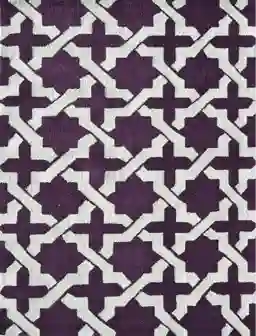 This rug is built for the elements. It is crafted from weather-resistant synthetic materials—typically polypropylene or polyester blends—which are inherently fade-resistant and mold-resistant. This ensures that the bold purple and white tones remain vibrant even when exposed to the direct sunlight common in coastal or southern climates.