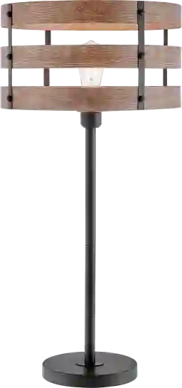 Update your space with the industrial look of the Quaylo Cove lamp. Featuring a fully black metal frame and shade with a wood-like brown brushed finish and texture, paired beautifully with an Edison bulb included. Style this lamp with minimalistic or boho design for a dynamic industrial feel. Partial assembly may be required.