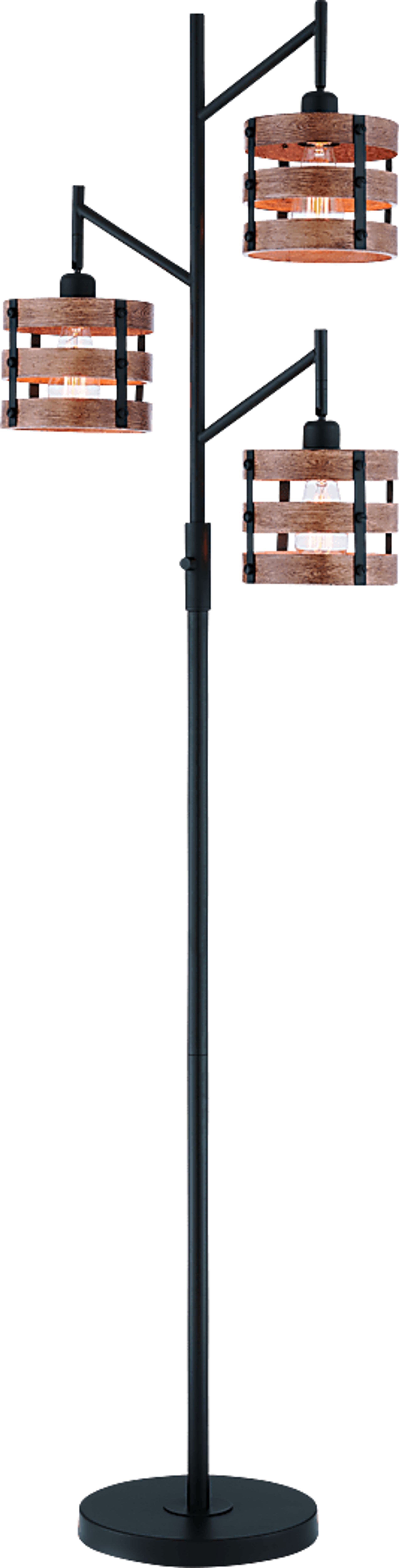 Update your space with the industrial look of the Quaylo Cove tree floor lamp. Featuring a fully black metal frame and shades with a wood-like brown brushed finish and texture, paired beautifully with Edison bulbs included. Style this lamp with minimalistic or boho design for a dynamic industrial feel. Partial assembly may be required.