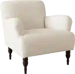 At once plush and polished, the Quinella accent chair has a generously cushioned look that adds classic comfort to your living room, bedroom, study or office. Traditional turned legs provide a studious finish. Crafted by hand in Illinois, USA. Customer assembly is required. Spot clean only. 100% Polyester. This piece is made to order and may take up to 6 weeks to deliver.