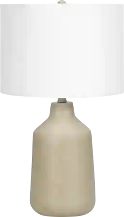 The vintage inspired, contemporary Radom Circle Beige Lamp is the perfect way to bring a stylish and fashionable accent to any office, living room, or bedroom. The smooth, beige concrete base is complimented by the ivory fabric shade and finished with a round beige finial on top. This versatile lamp easily illuminates a side or end table, a nightstand or bedside table. Partial assembly may be required.