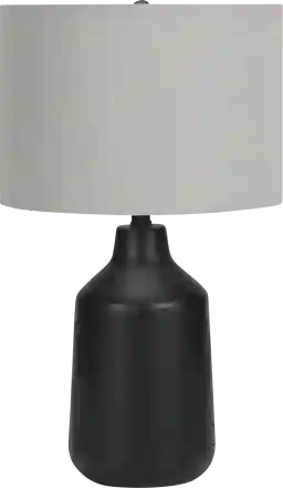 The vintage inspired, contemporary Radom Circle Black Lamp is the perfect way to bring a stylish and fashionable accent to any office, living room, or bedroom. The smooth, black concrete base is complimented by the gray fabric shade and finished with a round black finial on top. This versatile lamp easily illuminates a side or end table, a nightstand or bedside table. Partial assembly may be required.