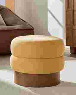 The ash wood veneer base serves two purposes: it provides a hint of natural, modern charm to your decor and ensures the ottoman remains a lasting centerpiece in your home. This rigid base prevents the "bottoming out" often experienced with floor poufs, protecting the upholstery from direct contact with the floor and increasing the item's overall longevity.