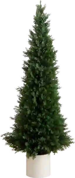 Bring the best of the Pacific Northwest's dreamy forests with the Rahway II green silk tree. Inspired by the dreamy, lush landscape, this cedar has lifelike leaves that look real. Crafted from high-quality materials, bend the branches to fit in your space for a custom look. This piece is safe for outdoor use, displayed under a covered surface for longevity. Standing in a white planter, you'll faux for this piece. Great for patios, porches, entryways and more. Bring this piece inside during inclement weather.