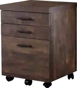 The trendy and industrial look of this 3 drawer filing Railton cabinet on 5 castors will bring a stylish dimension to your office space. Add this multi-functional filing cabinet, finished in a chic brown wood grain look, to any desk or table to create more storage. Accented with simple modern black handles, the top two drawers are useful for files, papers or books while the bottom drawer can fit standard or legal sized hanging folders. Whether tucked under a desk or placed on the side for a printer, books or other decorative items, this filing cabinet will be the little extra you needed in your work area. Customer assembly is required.