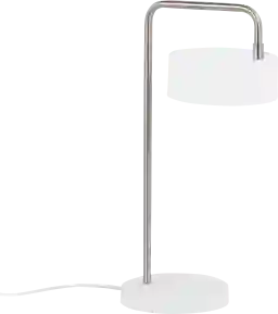 Lose any reason to procrastinate with the sleek design of the Raleigh Shade lamp. A round metal base holds up the thin, bent metal frame in a nickel finish. Topping off this table lamp is a stylish round, white metal shade. Partial assembly may be required.