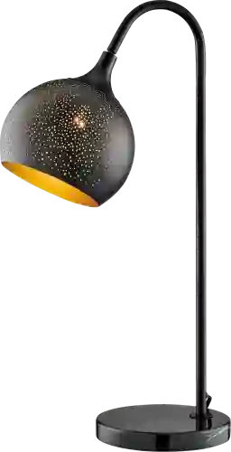 Introducing the perfect blend of style and function, the transitional-style Ralkell Land lamp is perfect for your office or reading space. The lamp shade is made of high-quality perforated metal in a sleek matte black finish, with a luxurious gold inner lining to add a touch of glamour to your workspace. The lamp sits on a sophisticated black marble base, adding a touch of elegance to any room. Illuminate your workspace with the perfect amount of light while enjoying the chic, modern design of this stunning desk lamp. Partial assembly may be required.