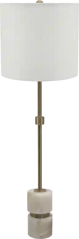 The Rambling Cay lamp is made with an alabaster base and cylinder shade that enhance the straight forward elegance of its tall, lean form. Ideal for complementing sideboards and other structural furniture staples, this large buffet lamp stays minimal while not shying away from introducing a statement of quality to a room. It's finished in white and silver tones to make it extra versatile. Partial assembly may be required.