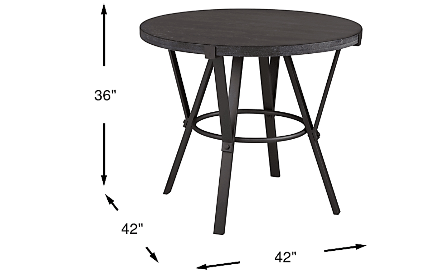 Establishing industrial style, the Ramona counter height dining table creates a refined look. Finished in gray, this table's metal base forms an intriguing contrast with the wood top. Its small round tabletop is designed perfectly for kitchen areas and apartment dining. Angled legs with exposed bolts enhance this table's modern appeal.
