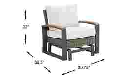 With a width of 30.75 inches and a depth of 32.50 inches, this chair has a relatively compact footprint for a club chair. However, because of the gliding function, you should allow for approximately 12 to 18 inches of clearance behind the chair and at least 6 to 10 inches in front. This ensures the chair can move freely without coming into contact with walls or other patio furniture.