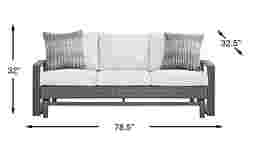 This outdoor sofa is specifically designed to accommodate up to three people. With a total width of 78.5 inches and a configuration of three individual seat cushions, it offers a generous seating area for social gatherings or relaxing comfortably in your backyard.