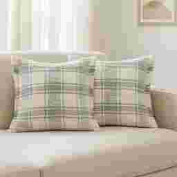 Decorate your space with this beautiful set of 2 Rangan farmhouse throw pillows. Made from a cotton blend fabric, it boasts a woven design for both quality and style. With a classic checkered pattern and detailed fringe, it blends effortlessly into your existing decor, while adding a fresh look. Perfectly placed on your sofa, chair, or bed, it is sure to add elevated design and dimension. Poly insert included.