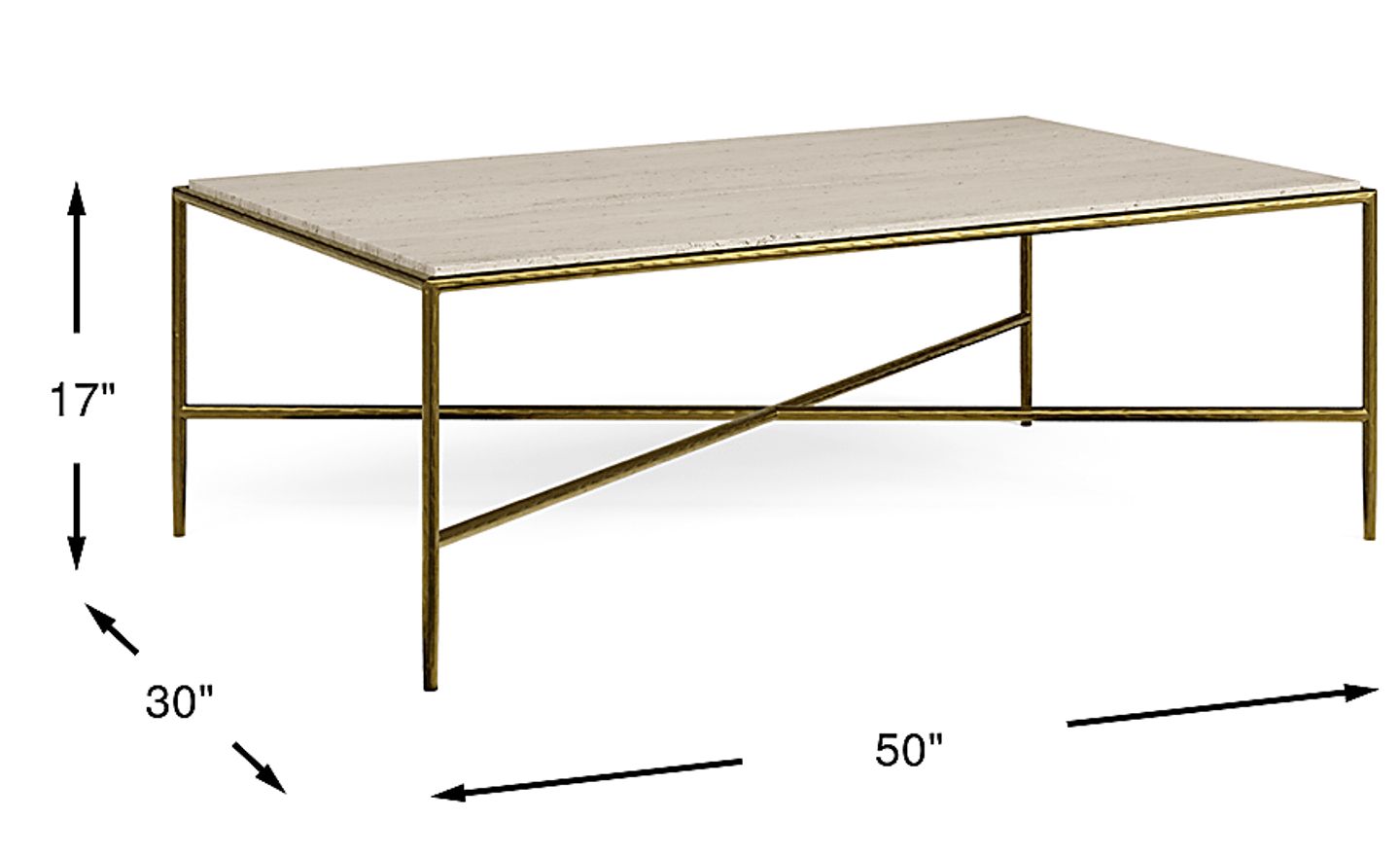 Balancing graceful form with warm, natural elegance, the Rangel collection brings a sense of refined harmony. Perfect for holding drinks or highlighting curated decor, this transitional cocktail table offers a charming accent for your space. Featuring a rectangular metal frame in a luxurious gold finish and a stone-inlaid top that showcases an ivory hue with gray and brown notes, classic beauty is reflected in every angle. Slender, round legs echo subtle opulence, while the interconnected base brings the look together with effortless sophistication.