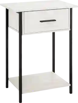 Elevate the style in your living room with the Rankiny light oak end table. The sleek design features a washed oak laminate finish and black metal legs, adding a contemporary touch to your space. The practical shelf at the bottom and convenient storage drawer with a metal pull provide ample space for your essentials, while the space saving design makes it perfect for small spaces. This table is durably designed with quality materials and easy to assemble with illustrated instructions included. Place a lamp, decorative item or books on the easy to clean laminate top for an end table that not only has fashionable style but also functional. Customer assembly is required.