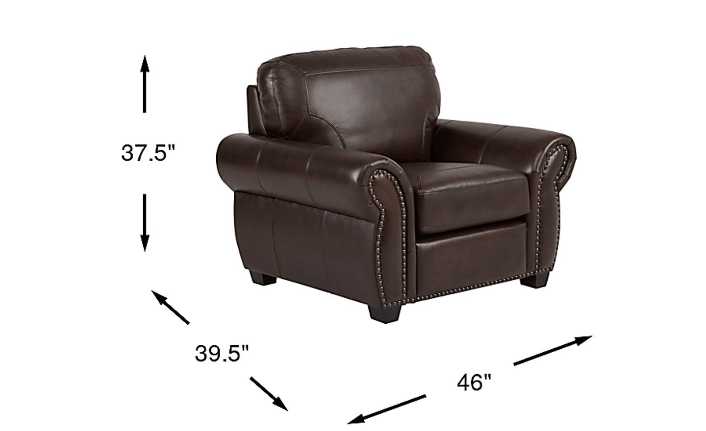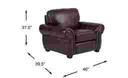 The Rapallo chair blends classic design with updated features, such as double stitch detailing. Brass finished nailhead trim, high quality top grain leather where the body touches and block legs are part of the timeless appeal of this piece. The rich mahogany color and padded, rolled arms add charm, while a boxed seat cushion promises comfortable seating. Upholstery: Top grain leather where the body touches and polyurethane fabric sides and backs.