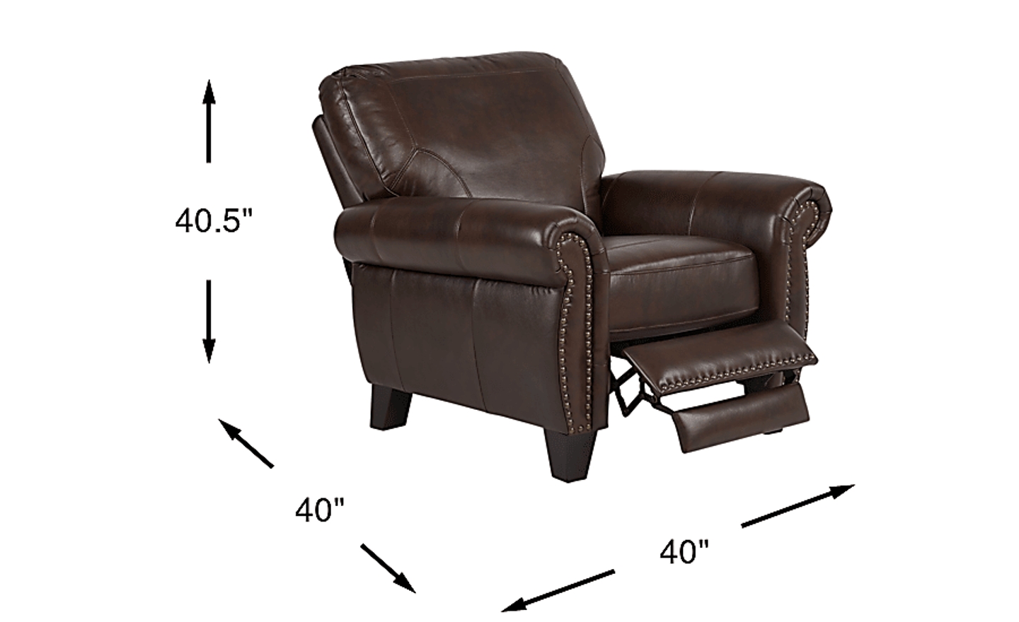 The Rapallo recliner combines the look of a classic club chair with the added comfort of reclining seating. Double stitch detailing, brass finished nailhead trim, high quality top grain leather where the body touches and block legs are part of the timeless appeal of this piece. The rich mahogany color and rolled arms add charm, while a boxed seat cushion and padded footrest promises comfortable support. Upholstery: Top grain leather where the body touches and polyurethane fabric sides and backs.