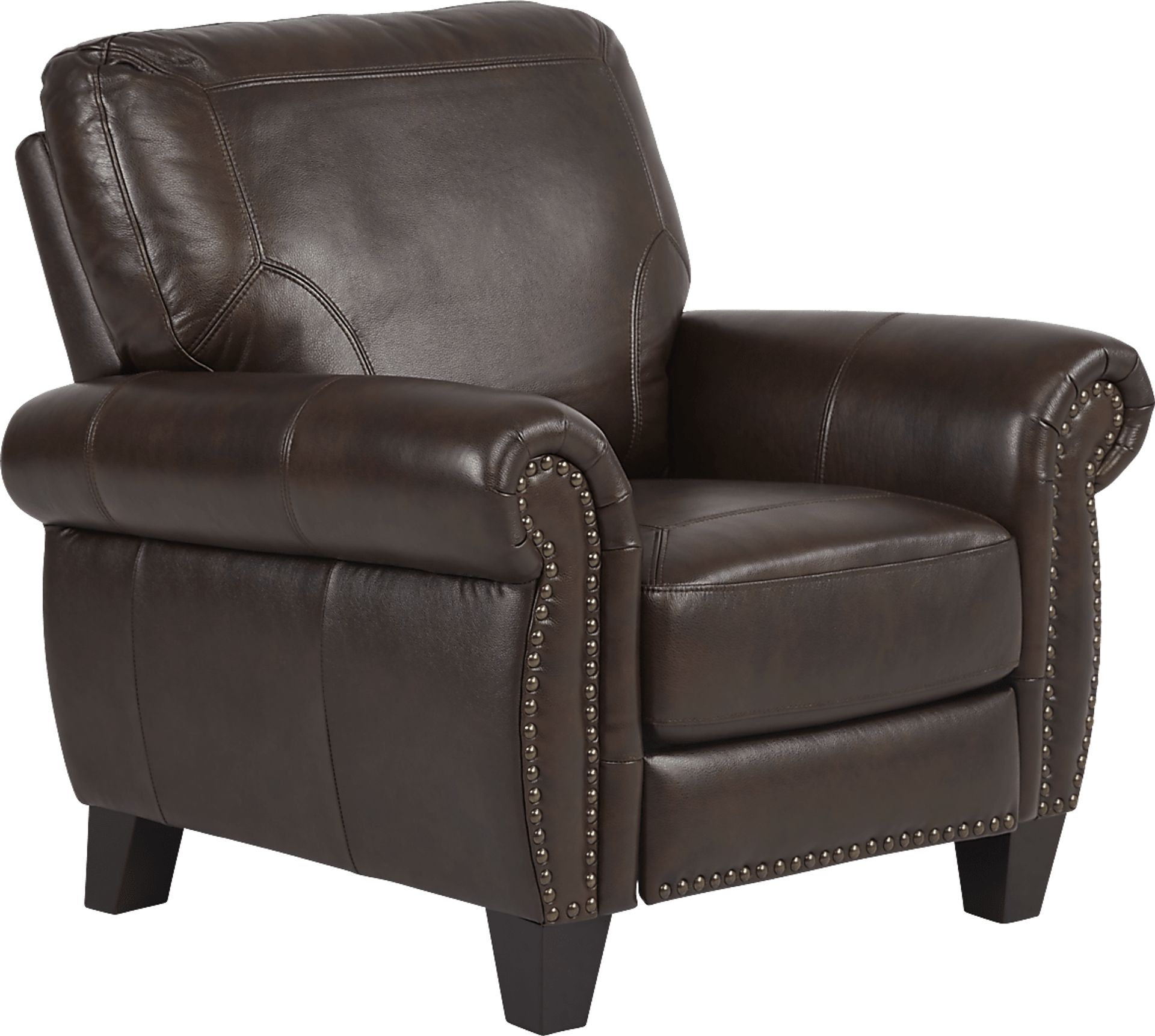 The Rapallo recliner combines the look of a classic club chair with the added comfort of reclining seating. Double stitch detailing, brass finished nailhead trim, high quality top grain leather where the body touches and block legs are part of the timeless appeal of this piece. The rich mahogany color and rolled arms add charm, while a boxed seat cushion and padded footrest promises comfortable support. Upholstery: Top grain leather where the body touches and polyurethane fabric sides and backs.