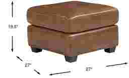 Simple, yet elegant, the Rapallo ottoman is the ideal complement to the room. Upholstered with top grain leather where the body touches, the ottoman has a boxed cushion, base and block feet to provide sturdy support or a comfortable extra seat. The ottoman's saddle brown colored leather is beautifully accented with decorative brass finished nailheads. Upholstery: Top grain leather where the body touches and polyurethane fabric sides and backs.