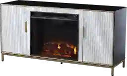 Warm up your home in modern style with this Rascher II electric media fireplace. A bold black and white design crafts a contemporary look, while the textured doors conceal movies, consoles, and games. Remote-controlled features and flickering LED flames give your living room or den a cozy feel, working with or without the heater for enjoyment in any season. Bring a cozy feel to movie nights with this fireplace media stand in your family room or open concept space. Customer assembly is required.