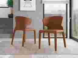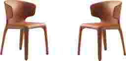 Clean lines accompany the Ravennite I brown side chair, set of 2, marrying functional comfort with a mid-century sophistication. Elevate your dining space with the supple faux leather luxury of this dining chair. This effortlessly chic dining chair offers a low, wrapped back with a gently cushioned seat to provide premium comfort and support, all while creating an upscale yet casual feel to your dining room, kitchen, or lounge space. The mid-century modern design radiates a versatility fitting multiple decor styles from upscale coastal, and contemporary farmhouse to urban industrial and eye-catching glam decor.