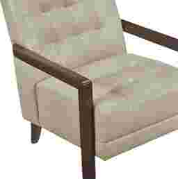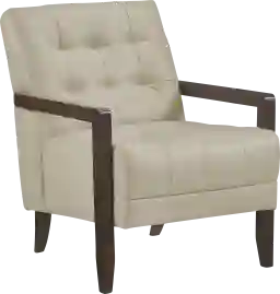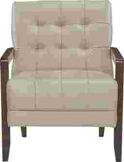 Elevate your living space with this Raydn top grain leather match accent chair, designed for timeless elegance, premium comfort, and lasting durability. Featuring a mid-century modern silhouette, deep tufted detailing, and a solid wood frame with sleek armrests, this chair blends sophisticated style with everyday functionality. The plush, high-density foam cushioning provides exceptional support, while the top grain leather match upholstery offers a luxurious look and soft, supple feel. Built with sturdy wooden legs and reinforced construction, this accent chair is perfect for living rooms, home offices, reading nooks, or bedroom seating, adding a touch of refined charm to any decor. Customer assembly is required.