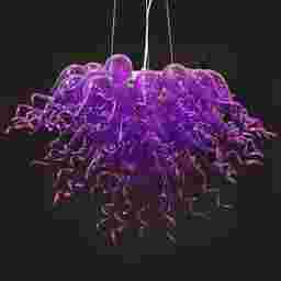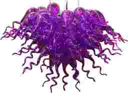 An illuminating work of art! An artist crafted the Rayet chandelier with individual blown glass elements that hang around a pyramid-shaped frame. Creating a spectacular visual effect. This offering is further dramatically enhanced by the vibrancy of lavender tones of mouth blown glass selected by the artists. While the art of glass blowing is often used in creating jewelry this offering actually creates a functioning piece of jewelry for the home. Requires 6 bulbs. Recommended bulb type is G9 with up to 25W (not included). Make sure Chandelier is off and cool and dust with soft rag. Assembly required.
