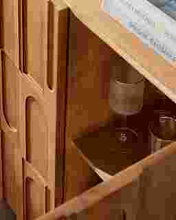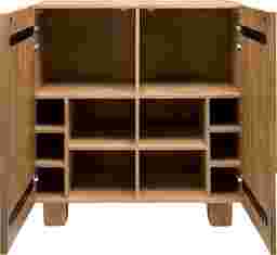 This bar cabinet is crafted from mango wood, a sustainable hardwood known for its exceptional density and strength. Because mango wood is naturally resistant to water and wear, it is an ideal material for a bar environment where durability and resistance to occasional moisture are essential. The wood’s unique grain patterns also ensure that each piece has a distinct, artisanal character that develops a beautiful patina over time.