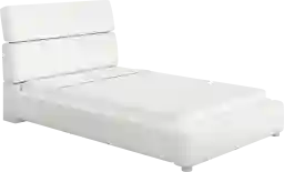 Modern and fun style come together with the Recharged bed. Upholstered with a look of leather fabric in a beautiful white color, this bed features contemporary lines. An array of matching attachable pieces adds fun mix-and-match style to this piece. Upholstery: 100% Polyester. Mattress and foundation sold separately. Bed shown is full size.