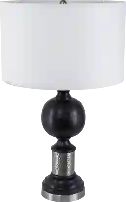 Crafted from a sturdy mix of iron and mango wood, the Reclinata Shade lamp features a black and gray hue, a unique shape including a pedestal base and spherical ball in the middle of the frame, and a classic shade. An ideal size for your bedside table, a desk in your study, or a living room end table, it will catch the eye of your guests from any location. Partial assembly may be required.