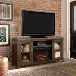 Recton Brown 65 In. Console With Electric Fireplace