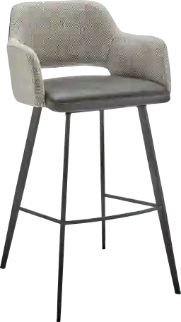 The Reder dark gray barstool rolls in with a vintage distressed soft leatherette seat paired with durable fabric back and armrests. Matte black powder coated steel legs and footrest. Customer assembly is required.