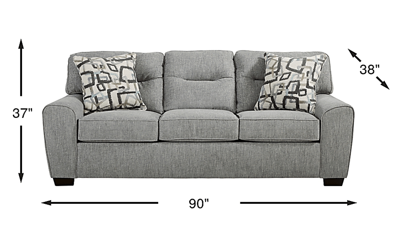 Lounge in style with the Redwood Park sofa. Boasting gray chenille fabric, this piece offers comfy seating. Its transitional design partners easily with any aesthetic. Low-profile arms make way for relaxation. Extending the lifetime of your sofa, seat cushions are loose and reversible. Welted seams and channeled backs provide delicate details. A blue, brown and gray geometric print decorates the included toss pillows. Upholstery: 100% Polyester.