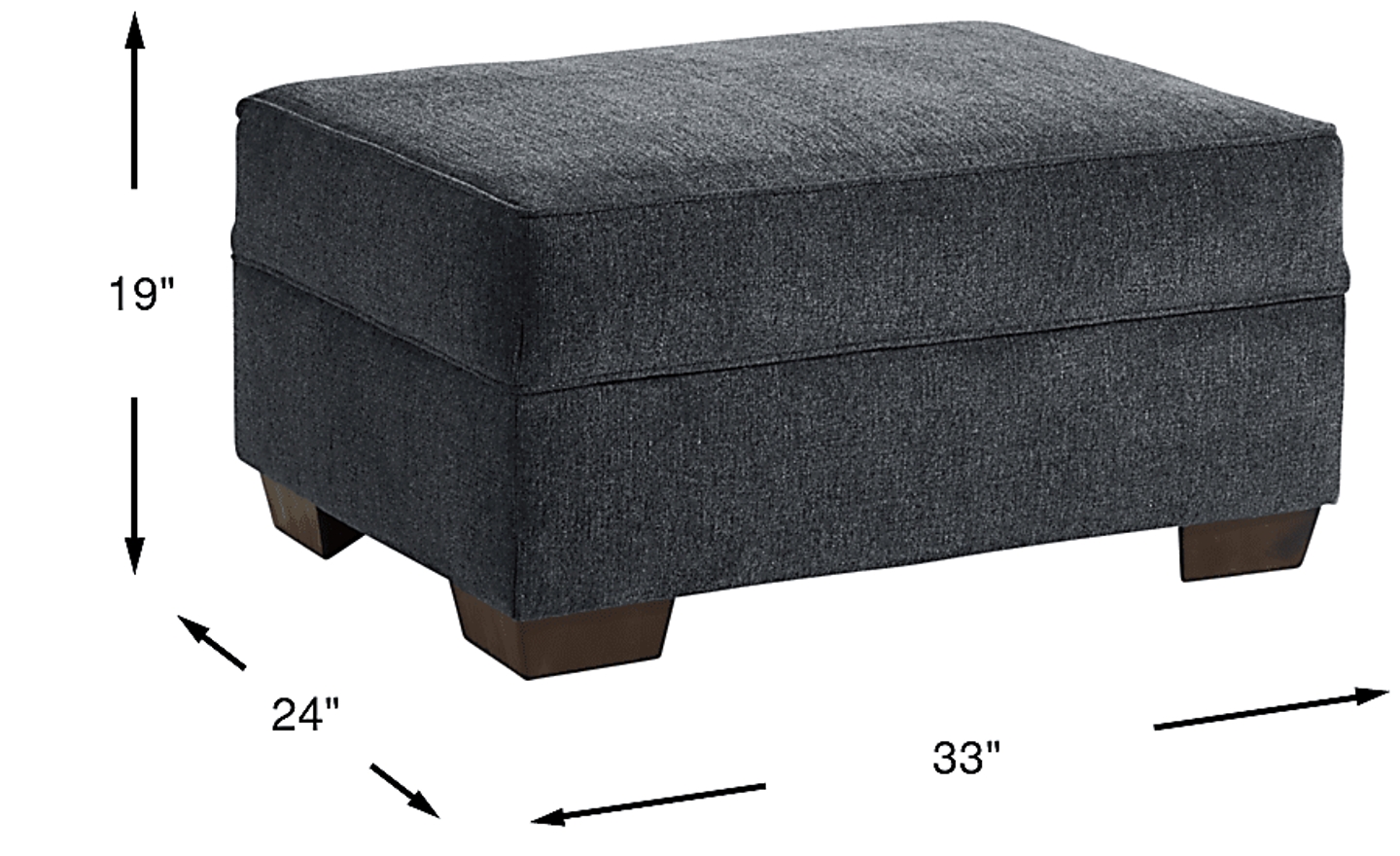 Whether used for foot resting, seating or stowing, the Redwood Park storage ottoman makes a convenient addition to your space. Transitional in style, this piece boasts chenille fabric in a navy hue. A lift-top storage compartment offers space for extra blankets, pillows and more. Welted seams complete the look. 100% Polyester.