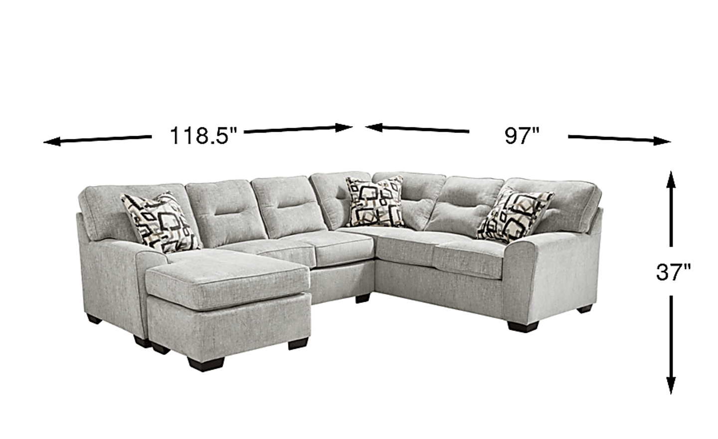 118.50"w x 97.00"d x 37.00"h
