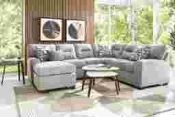 Quiet moments and everyday relaxation are effortless with the Redwood Place sectional, thoughtfully designed to bring ease and beauty to the heart of your home. Transitional in style, this piece is upholstered in light gray chenille for a clean and versatile look. Simply tufted back cushions and subtle wedge arms add a refined charm paired with an inviting feel. Welted seems throughout highlight its crisp structure and boast a handsome silhouette. Beige accent pillows showcase a geometric motif in earthy shades of brown and gray, making a bold yet balanced statement. Tapered legs in a warm brown finish complete the look with a touch of grounded elegance. Upholstery: 100% Polyester.