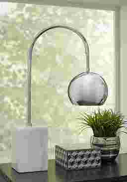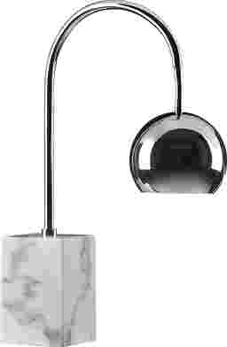 The Refton table lamp has a solid Carrera marble base and chrome metal shade and frame; giving a new dimension to the modern arc style. Add a touch of whimsy to desks, consoles or end tables, even a modern buffet. You are sure to make a fun design statement. Some customer assembly required.