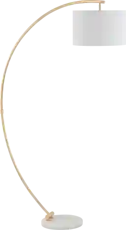 A spellbinding display of modern sophistication, the Reisener Drive Gold Floor Lamp is the epitome of modern class. This lamp's glamorous gold leaf finish and circular white marble base beautifully highlight its artistic arc frame, while a crisp white shade completes the look. Partial assembly may be required.