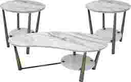 Champagne and caviar vibes meet South Beach chic in the Renata collection. The cocktail table's pièce de resistance is a sintered stone top that's free-formed in a playful yet très luxe kidney shape. Sleek gold-tone metal legs support the table as a whole and the floating shelf that rests beneath the table's top. A pair of matching round end tables complete the set.