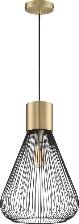 Featuring trending combination of black and gold color, the Renellie Club pendant is a stylish addition to a dining or bar area. Under a bulky golden column, the black metal wires shower down to form a cage-like shade giving this pendant a touch of industrial design. Add a vintage buld for an alluring look. Professional installation by an electrician is recommended.