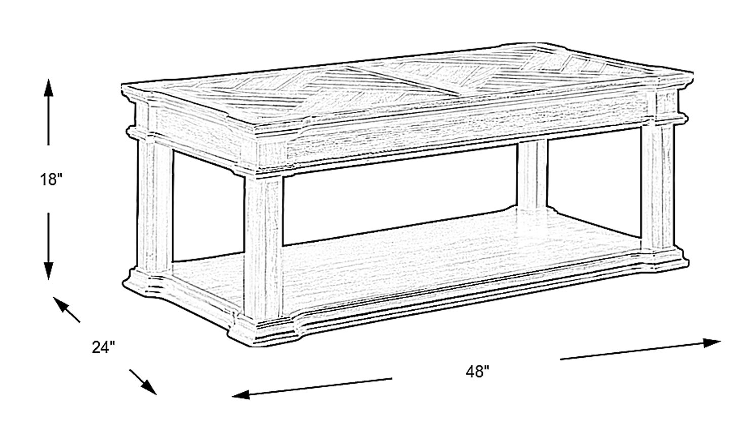 The integrated lower shelf is an essential feature for maintaining an organized, clutter-free home. It effectively doubles your storage capacity, providing a dedicated space for coffee table books, magazines, or media remotes. By utilizing the shelf for these essentials, the herringbone-patterned top remains clear for decorative accents or serving guests, maximizing both the style and utility of the table.