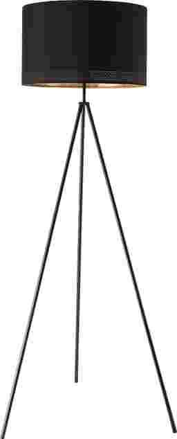 The Renfrew Lane Black Floor Lamp reimagines a classic drum shade with modern warmth and thoughtful detail. Its black shade is lined in gold and accented with a laser-cut band that casts delicate patterns of light when illuminated. Anchored by a sleek black frame and operated by a discreet foot pedal switch, this floor lamp brings soft ambient glow and understated elegance to living rooms, reading corners, or bedroom lounges. Partial assembly may be required.